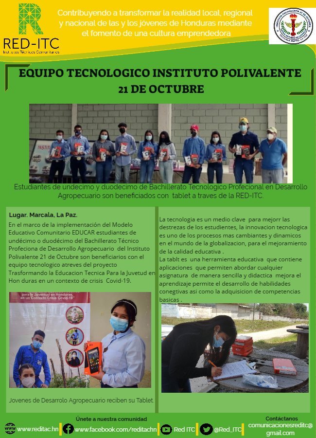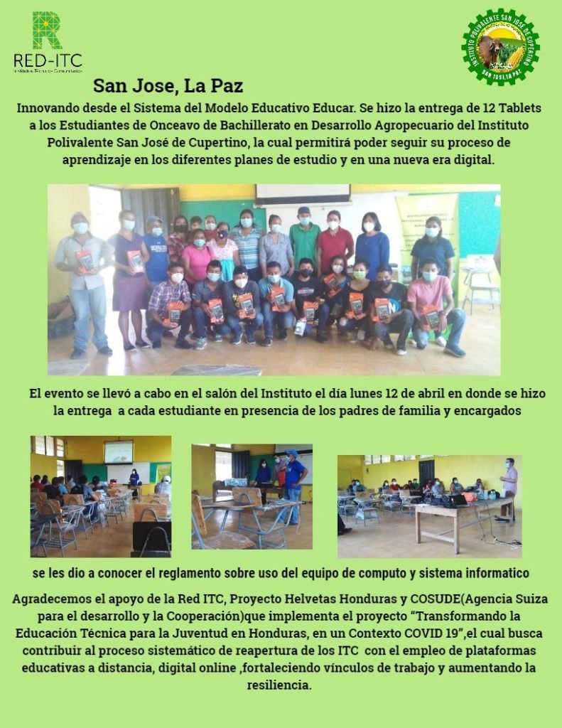 Los estudiantes de duodécimo grado de BTP en Desarrollo Agropecuario del IGTC David Hércules Navarro de Guarita Lempira, miembros de la RED ITC; en los espacios curriculares de industrialización Agrícola y Pasantía de Productos Agrícolas, están elaborando con mucho esmero y dedicación deliciosos vinos, mermeladas, salsas y volteado de banano, actividades dirigidas por la Licenciada […]