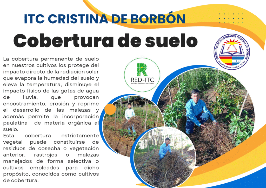 Inst. Cristina de BorbónCobertura de suelo Jóvenes del Undécimo grado en Innovación y Desarrollo Agroforestal realizaron practica de aplicación de cobertura de suelo en el cultivo de chiles, implementando así uno de los principios ASA.