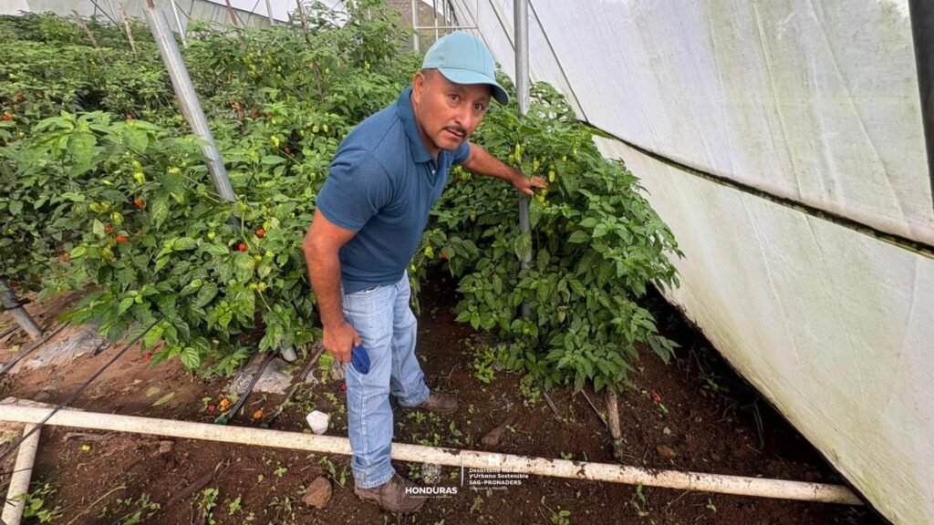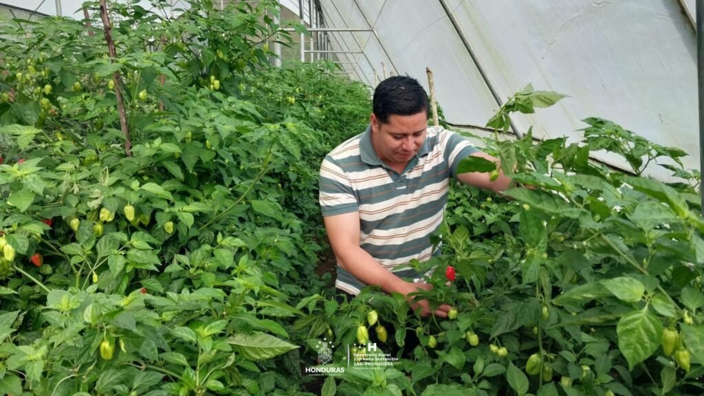El día sábado 27 de septiembre el Lic. Melvin Benítez recibió la visita del Ing. Andy Sánchez Coordinador del diplomado de producción de hortalizas bajo invernadero y Coordinador Nacional de Seguridad Alimentaria en la Finca Agroindustrial para observar y conocer el proceso del cultivo de chile habanero bajo invernadero ya que nuestro Centro educativo fue escogido como colegio insignia por estar cultivando de forma continua bajo invernadero. Excelente esto es producto del esfuerzo y dedicación del Lic. Melvin Benítez y de sus estudiantes, ya que lleva 18 semanas produciendo chile sin parar para un promedio de 280 libras semanales.