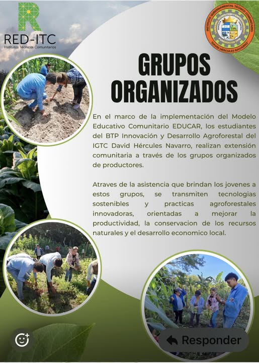 Inst. David Hércules NavarroEstudiantes del BTP en Innovación y Desarrollo Agroforestal del IGTC David Hércules Navarro, realizan extensión comunitaria a través de grupos organizados de productores. Red de Institutos Técnicos Comunitarios