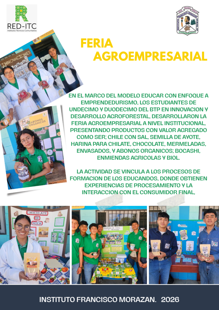 Estudiantes del Instituto Francisco Morazán, de undécimo y duodécimo del Bachillerato Técnico Profesional en Innovación y Desarrollo Agroforestal, desarrollaron la feria agroempresarial a nivel institucional.