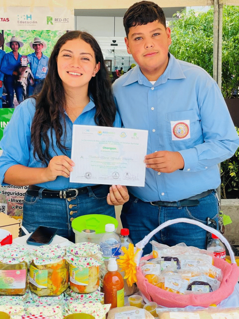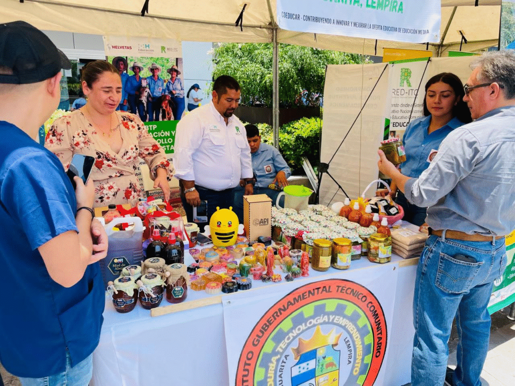Jóvenes estudiantes del IGTC David Hércules Navarro de Guarita Lempira participan en la Agroferia 2024; llevada a cabo en el Centro Cívico Gubernamental en la ciudad de Tegucigalpa; con los productos elaborados en los espacios curriculares del BTP en Innovación y Desarrollo Agroforestal.