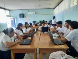 Jovenes de Duodecimo Grado, realizando prácticas de Redes, en el Espacio Curricular de Redes Informáticas.