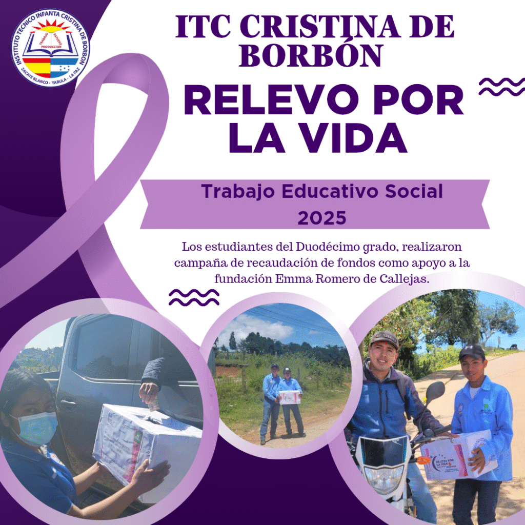 Inst. Cristina de BorbónJuventud con un propósito solidario Los jóvenes del Duodécimo grado de ambas modalidades del ITC Cristina de Borbón, participaron en la recaudación de fondos a beneficio de los niños con cáncer bajo el componente Relevo por la vida de su Trabajo Educativo Social