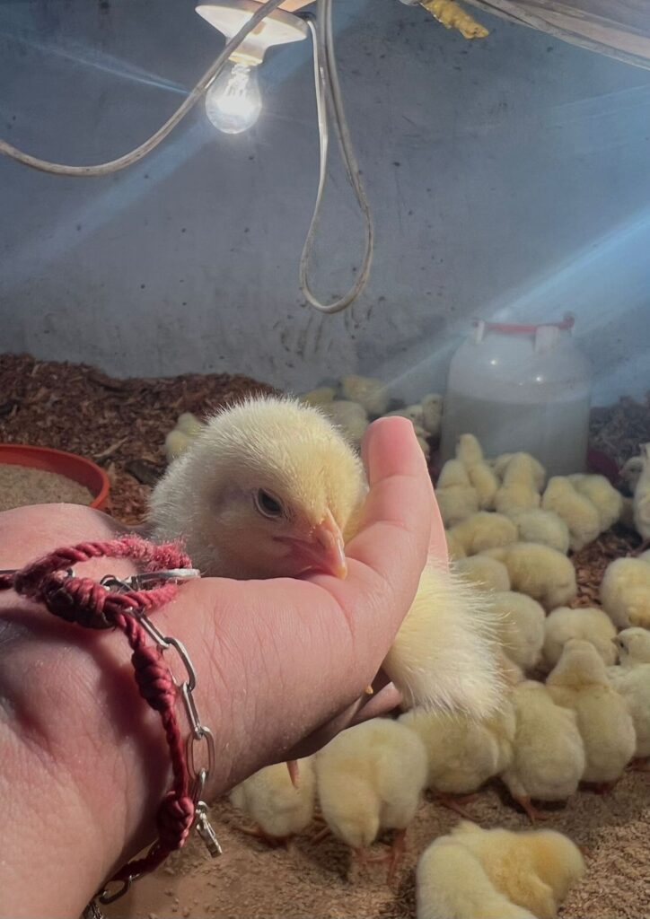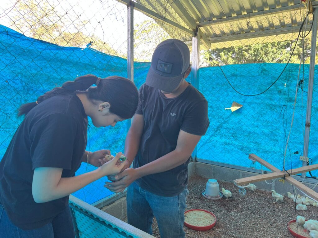 Estudiantes del BTP en Innovación y Desarrollo Agroforestal, bajo la implementación del Modelo EDUCAR realizan prácticas de manejo de pollos de engorde, donde aplican conocimientos sobre alimentación, cuidado, sanidad y control del crecimiento de las aves.