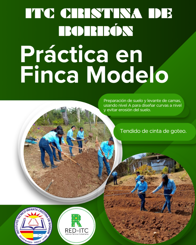 🌱🚜 Práctica en la Finca Modelo Los estudiantes continúan fortaleciendo sus conocimientos a través del aprendizaje práctico en la Finca Modelo del ITC Cristina de Borbón. En esta ocasión realizaron actividades de preparación de suelo, levante de camas y tendido de cinta de riego por goteo, poniendo en práctica técnicas fundamentales para el establecimiento de cultivos. Estas experiencias permiten que los jóvenes del BTP en Innovación y Desarrollo Agroforestal desarrollen habilidades que contribuyen a su formación técnica y al fortalecimiento del sector agrícola. 🌿👩‍🌾👨‍🌾