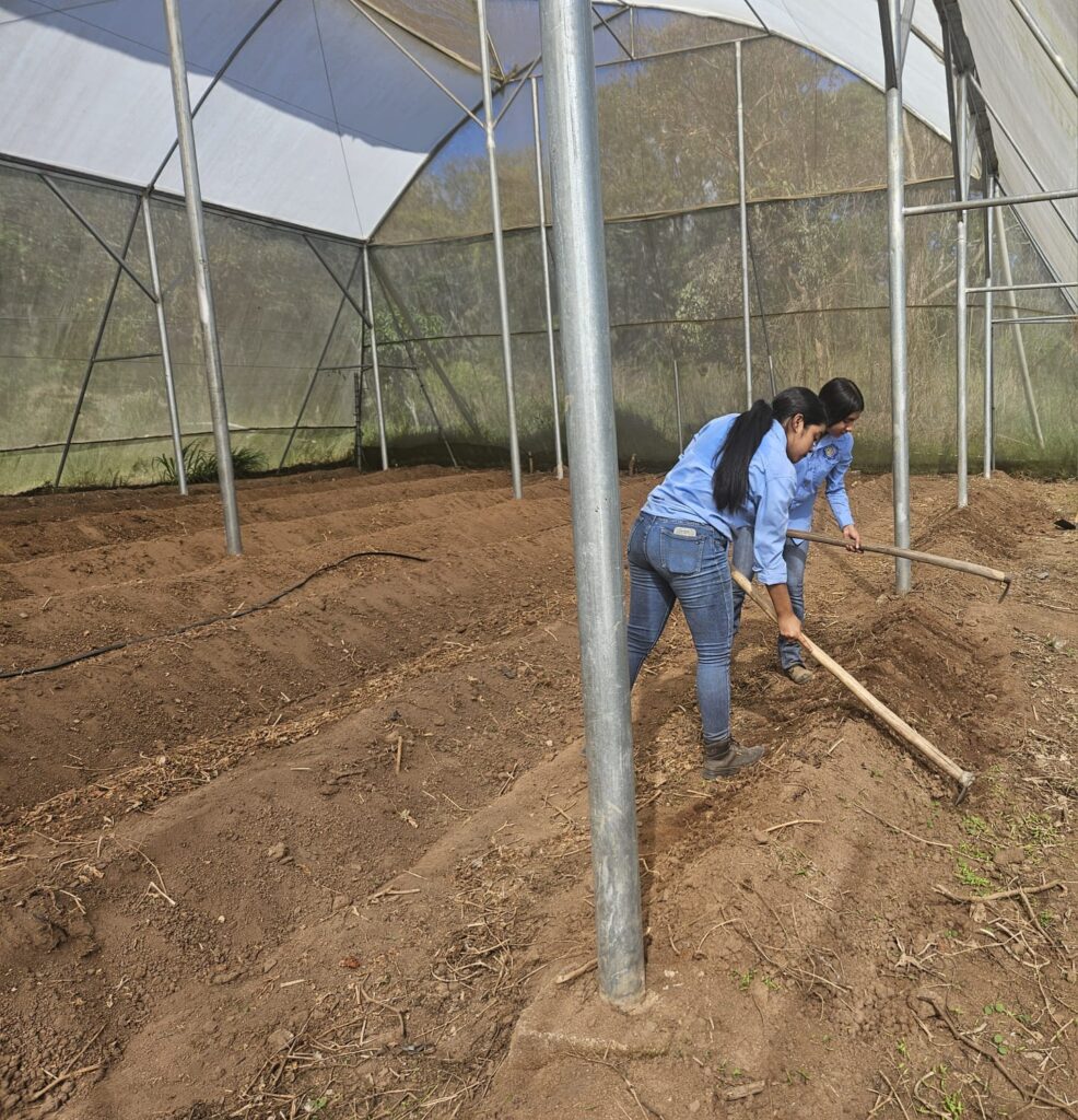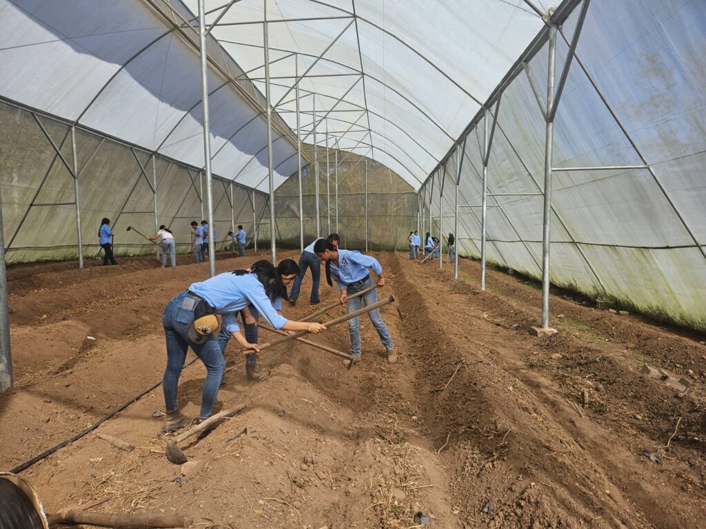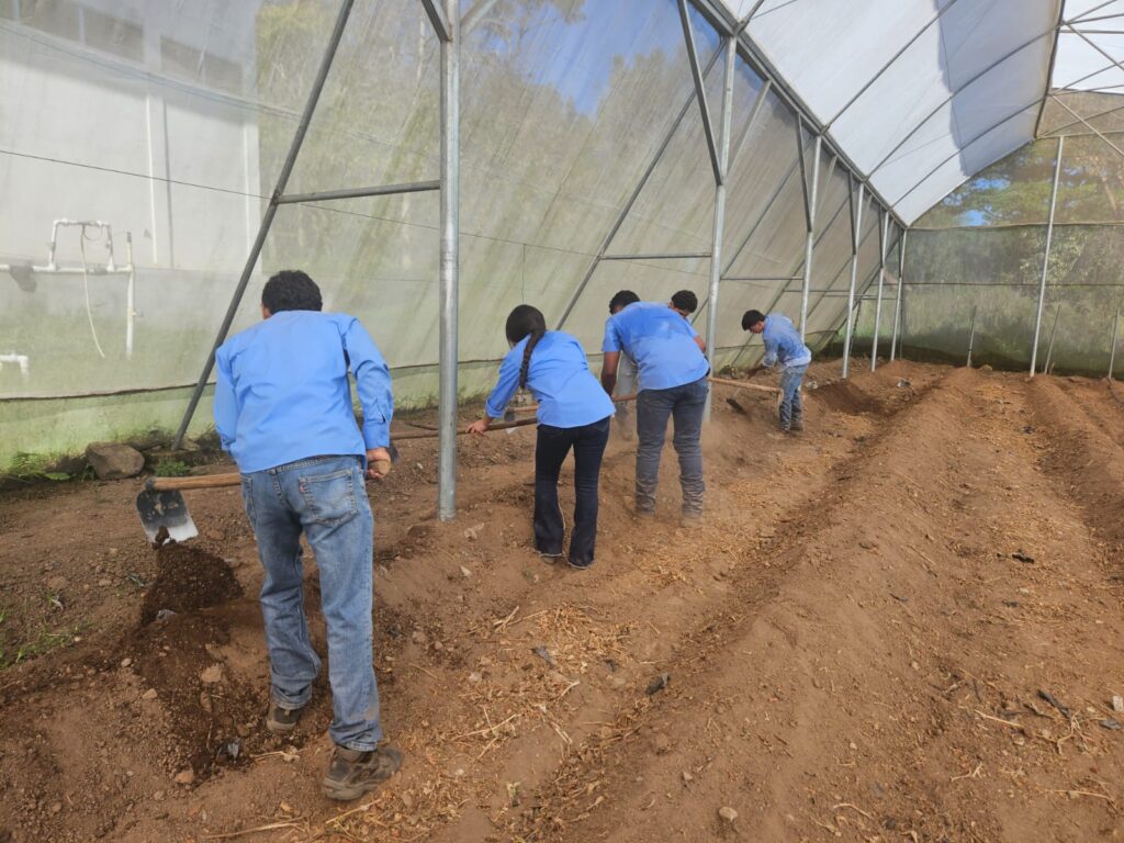En el contexto de la implementaciòn del Modelo Educativo Comunitario EDUCAR, los estudiantes de Onceavo grado del BTP IDAF , este dia en la Finca Agroindustrial; preparan el suelo, con levantamiento de camas, instalacion de sistema de riego por goteo y colocacion de plastico para la siembra de chile habanero color naranja y chocolate bajo invernadero. Se realizara la siembra de 720 plantulas de chile. Este cultivo sera manejado con estudiantes de Onceavo y Doceavo Grado en los espacios curriculares de establecimiento de cultivos I y II y como una Incubacion de Agronegocios.