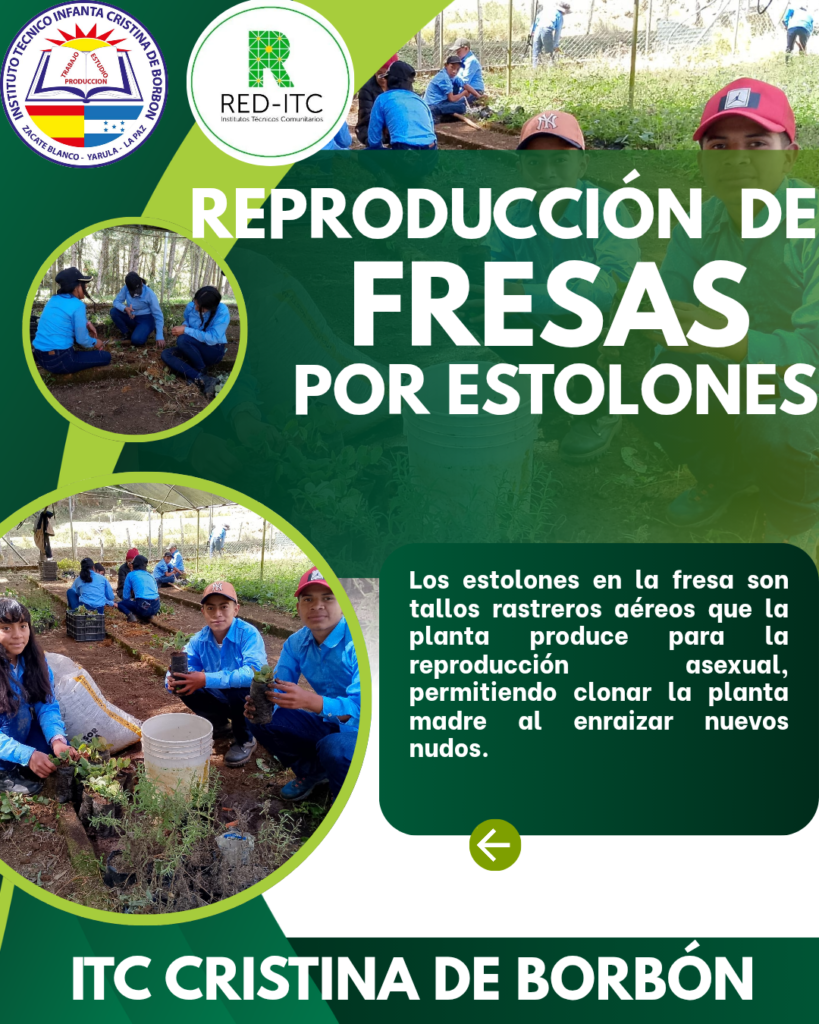 🍓🌱 Reproducción de Fresas por Estolones En el espacio curricular Manejo de Cultivos, los estudiantes de Undécimo grado del BTP en Innovación y Desarrollo Agroforestal realizaron una práctica sobre la reproducción de fresas por estolones en la Finca Modelo del ITC Cristina de Borbón. A través de esta actividad, los jóvenes fortalecen sus conocimientos sobre la propagación de cultivos, aplicando técnicas que favorecen la producción y el manejo adecuado de las plantas. 👩‍🌾👨‍🌾🌿